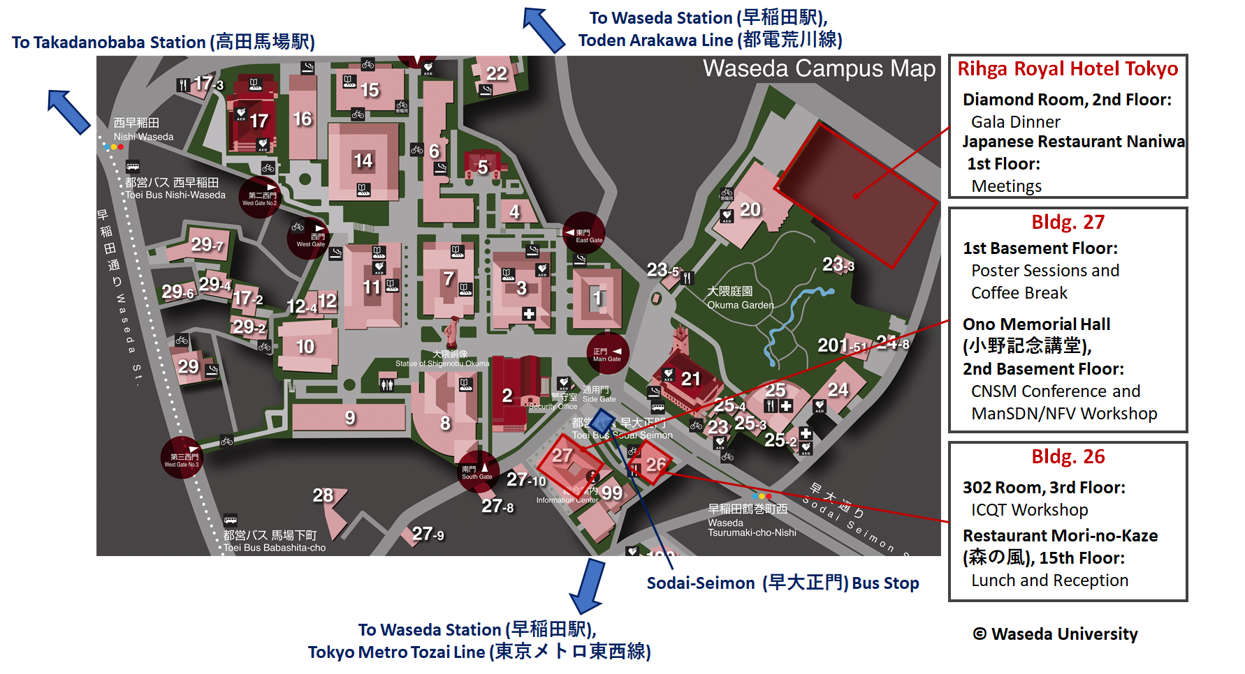 - Gala Dinner: Diamond Room, 2nd Floor, Rihga Royal Hotel Tokyo in the campus