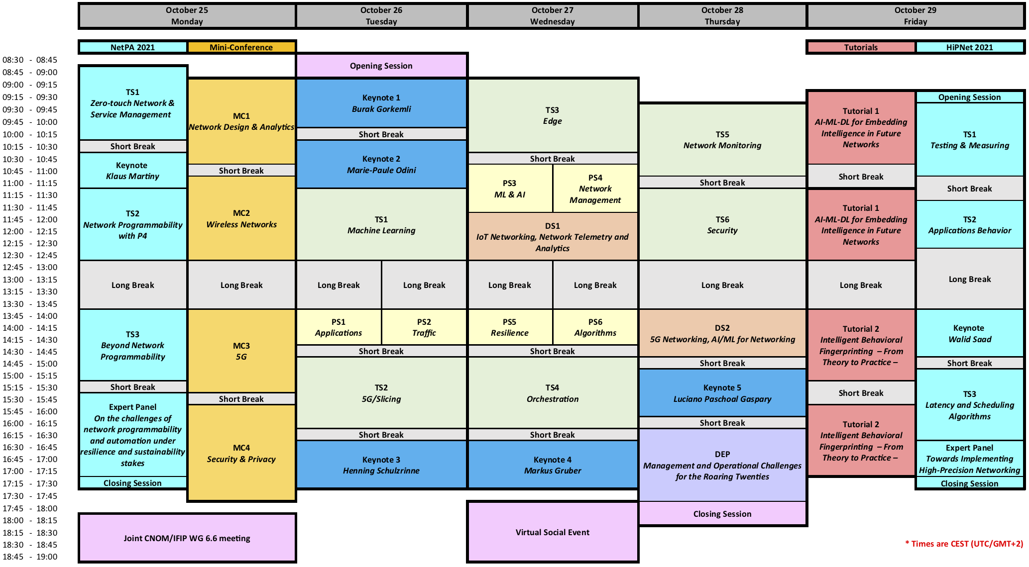 Here is the program for CNSM 2021. All times are for the CEST timezone.