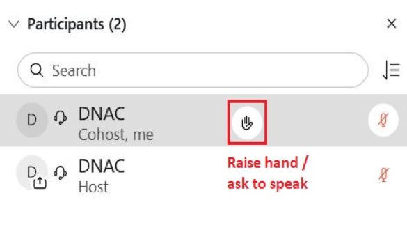 - You can also ask to speak by clicking on the button to "Raise your hand"