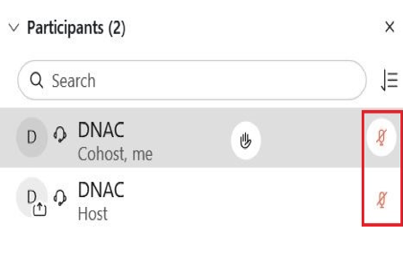 - Session chair can also Mute specific people by going to the Participants panel, searching for their name, and selecting