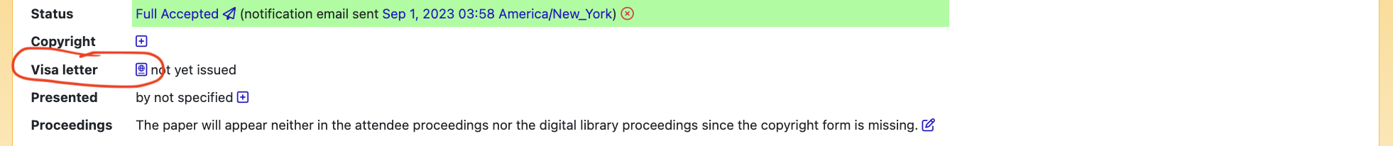 Visa letters can be requested through EDAS, using the link that appears on your paper’s page