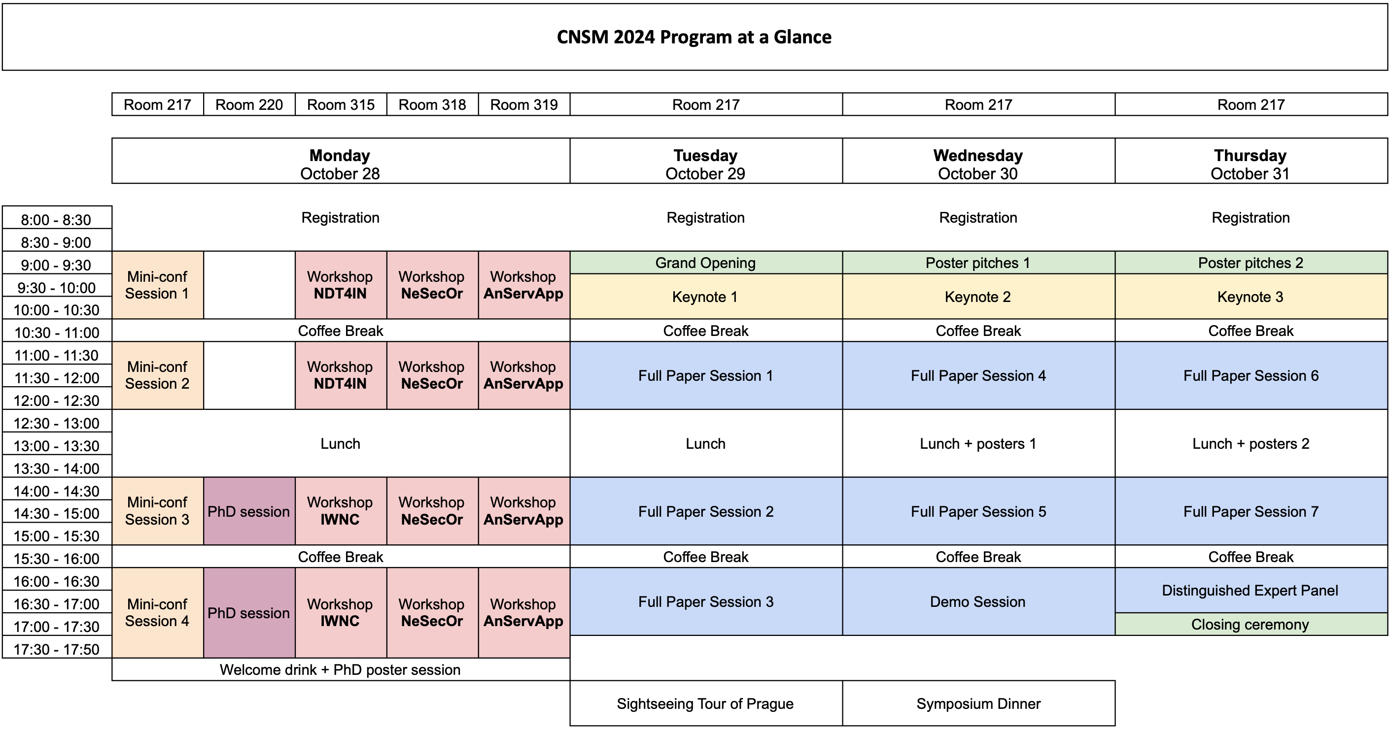 Here is the program for CNSM 2024. All times are for the Central European (CET) timezone.